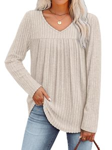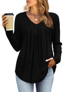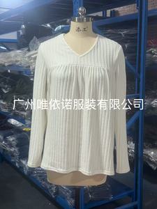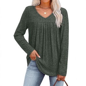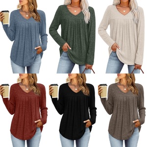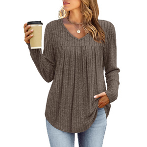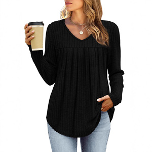 2025亚马逊跨境休闲长袖上衣秋冬欧美褶皱时尚T恤