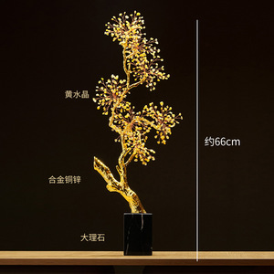 【聚财又亨通】天然黄水晶+金属枝干+大理石底座