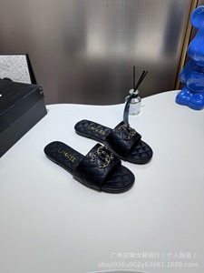 高端品质小香风平底菱格链条扣一字拖外穿女夏季新款凉拖全套包装