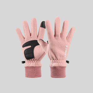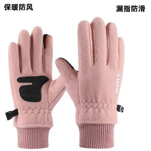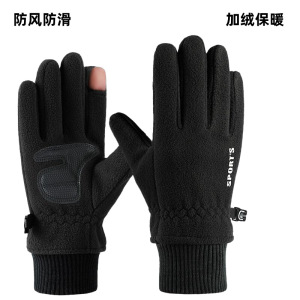 翻盖露指摇粒绒手套冬季女男情侣骑行电动自行车防寒加绒加厚保暖