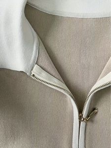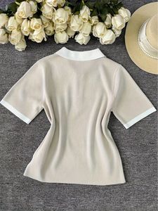 欧美跨境亚马逊优雅休闲翻领针织短袖上衣开襟拉链撞色拼接口袋