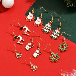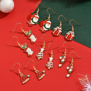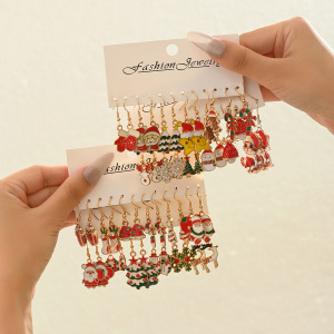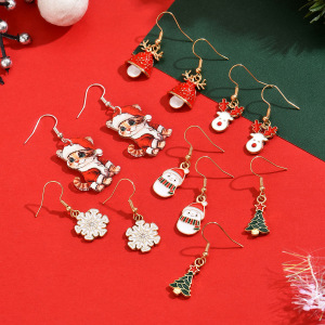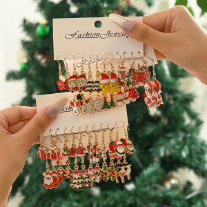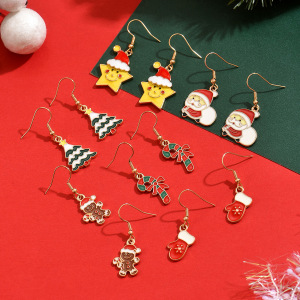 亚马逊跨境圣诞节系列耳钩耳环女节日耳饰卡通雪花星星耳坠套装