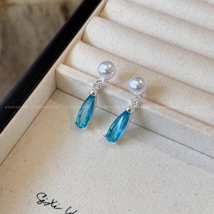 宝石蓝水滴珍珠耳环