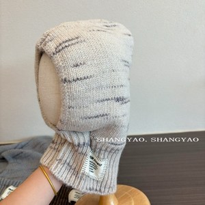 韩系洋气秋冬儿童宝针织巴拉克拉法帽毛线帽围脖一体毛线护耳帽子