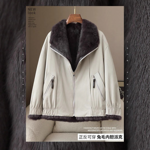 2025反季高端秋冬新款女式韩版休闲兔毛内胆双面穿尼克服皮草外套