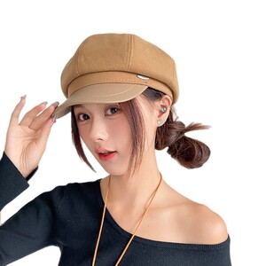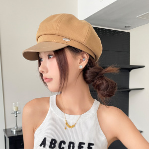 秋冬毛呢贝雷帽子女韩版百搭显脸小鸭舌帽时尚复古英伦百搭八角帽