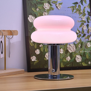 奶油风玻璃蛋挞灯卧室床头护眼中古台灯咖啡店无线充电氛围小夜灯