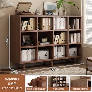 实木书架落地置物架胡桃色格子柜客厅收纳储物柜靠墙矮柜飘窗书柜