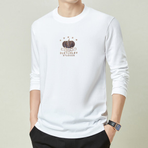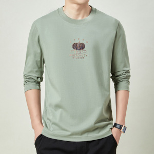 春秋季重磅男士100%纯棉长袖t恤打底衫上衣男式全棉纯色圆领卫衣