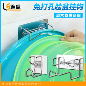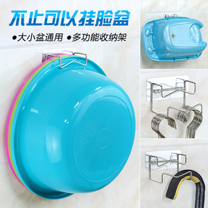 和兴不锈钢脸盆架多功能脸盆挂钩 卫生间无痕免钉粘钩墙壁挂无磁