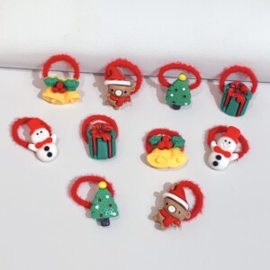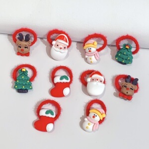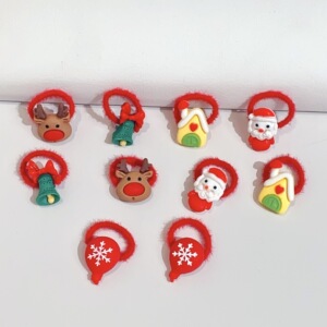 跨境圣诞新款儿童可爱拇指发圈宝宝饰头绳女孩高弹不伤发皮筋头饰