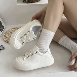 丑萌圆头小白鞋女款2025春秋韩版纯色厚底帆布鞋增高学生休闲板鞋