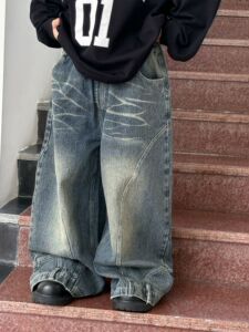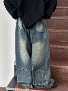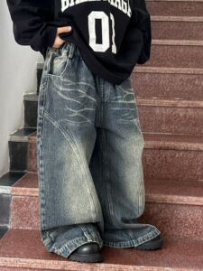 男童牛仔裤秋季美式高街小众长裤2025新款潮牌儿童微喇裤宽松裤子
