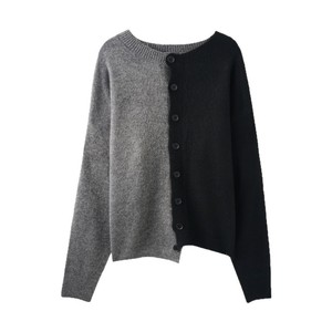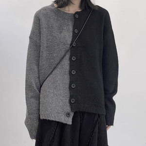 外贸不规则毛衣女外套秋冬新款复古小众拼色韩版慵懒风针织开衫女