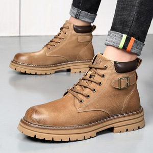 马丁靴男士潮款秋季真皮户外登山徒步大黄靴高帮复古英伦工装靴子