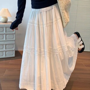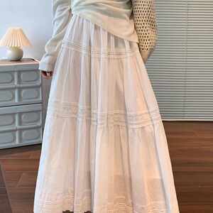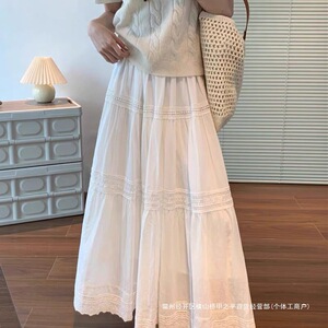 森系层次感白色蕾丝花边半身裙女温柔风百搭A字长裙高腰蛋糕裙子