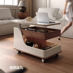 新款胡桃木可折叠茶几现代简约可移动茶几家用客厅升降折叠式推车