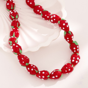 彩色仿真立体草莓琉璃珠 diy穿孔手链项链手工饰品配件梨子散珠