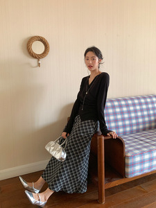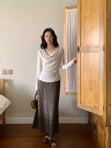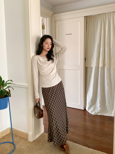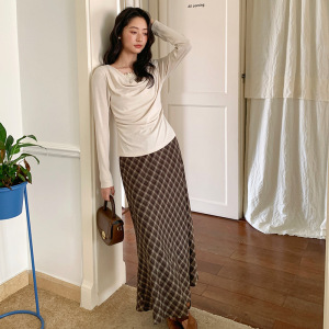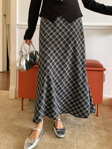 起范 法式优雅高级感格子半身裙女A字高腰长裙显瘦2025秋季86253