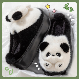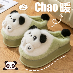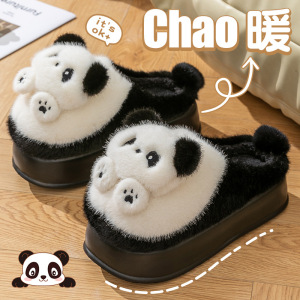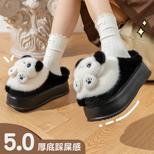 高跟厚底熊猫棉拖鞋女士秋冬季2025新款外穿毛绒保暖可爱棉拖女