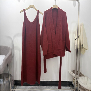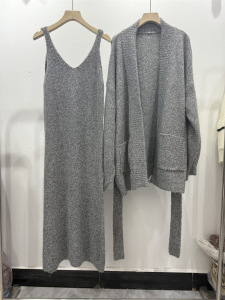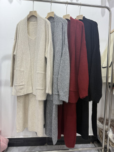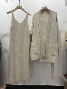 欧洲站秋冬新款开衫外套装女宽松毛衣针织衫跨境批发时尚名媛女装