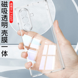 适用三星ZFold7手机壳折叠屏pc转轴支架壳膜一体透明无线充保护壳