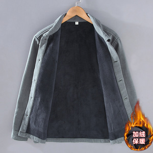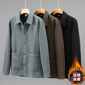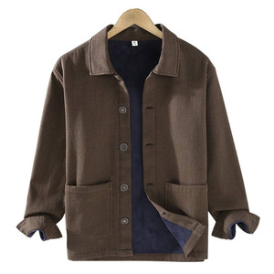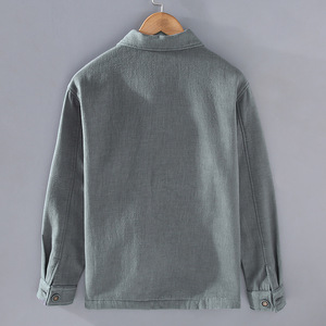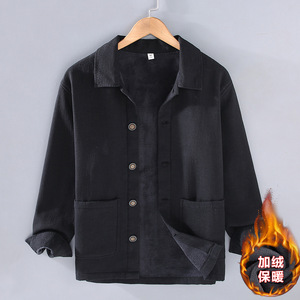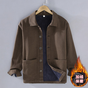 加厚加绒苎麻长袖衬衫男冬季厚款保暖中式简约棉麻休闲外套男