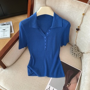 广州十三行高货爆款~v领针织上衣女夏季时尚新款百搭软糯舒适短袖