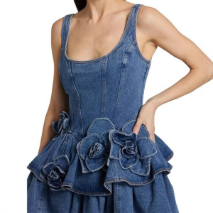 ZA速卖通爆款跨境欧美风女装花朵气质无袖牛仔连衣裙
