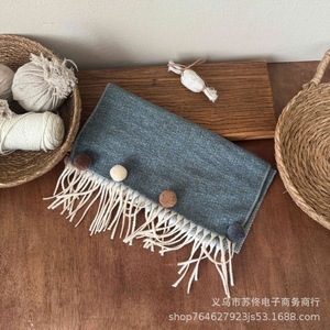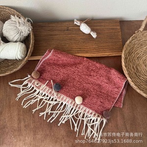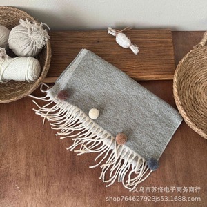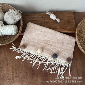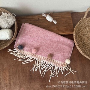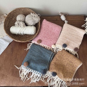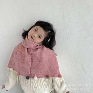 儿童羊绒围巾批发秋冬新款男女童户外保暖针织围脖小毛球纯色围巾