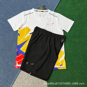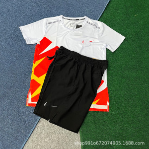 夏季体育田径训练冰丝短袖短裤套装男女运动速干健身跑步三分批发