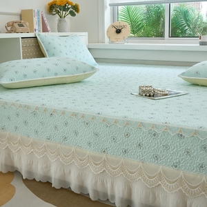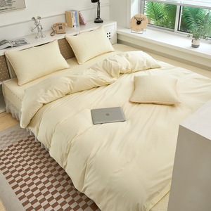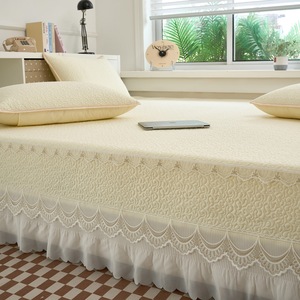 米白色纯棉双层边榻榻米炕盖四件套可床盖三件套踏踏米垫