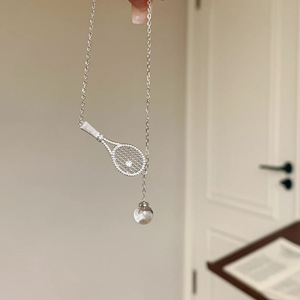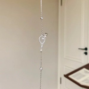 S925纯银网球拍白水晶项链女运动风满镶锆石个性轻奢时尚百搭手链