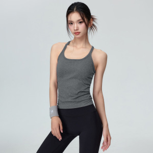 无缝一体织运动背心女工字美背健身上衣固定杯瑜伽文胸