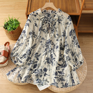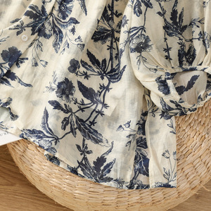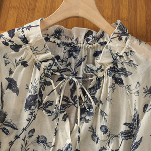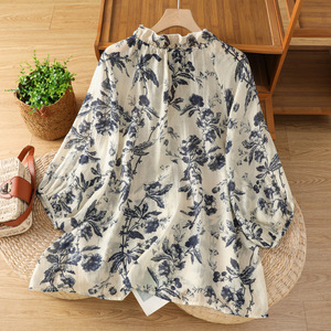 新中式国风印花薄款长袖衬衫女宽松慵懒防晒上衣2025夏新款设计感