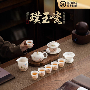 璞玉高档白瓷茶具套装家用办公陶瓷中式功夫茶具盖碗泡茶礼盒套装