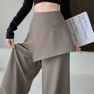 假两件设计感西装阔腿裤女秋季新款屁帘高腰遮胯显瘦休闲直筒裤子