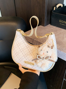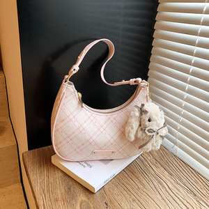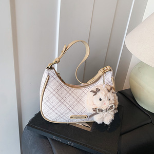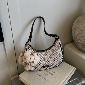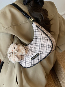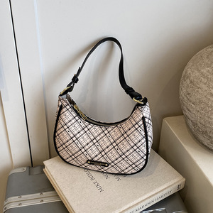 超火小众格子包包女2025新款时尚撞色百搭斜挎包单肩腋下包小拎包