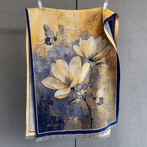 2025秋季复古花卉蝴蝶印花围巾仿羊绒加厚保暖围脖时尚百搭大披肩