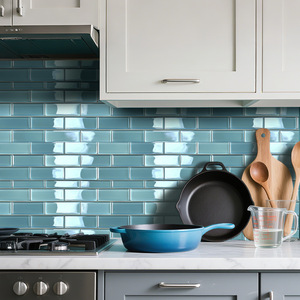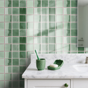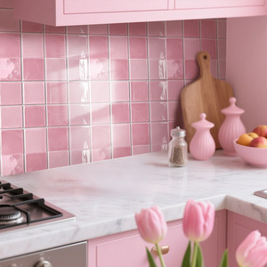 马卡龙莫兰迪小清新浴室厨房地面墙面防水防油自粘PVC仿真瓷砖贴