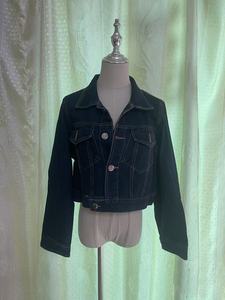 2025春秋欧货密室大逃脱幂幂同款复古深蓝色短款上衣外套