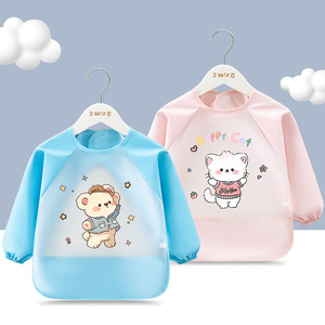 儿童吃饭围兜防水宝宝罩衣防脏小孩长袖饭兜婴儿反穿护衣围裙
