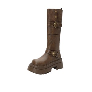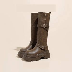 2种筒围~美拉德复古皮带扣棕色长筒靴女新款骑士靴小个子高筒靴女