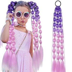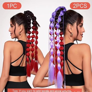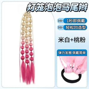 彩色泡泡辫子渐变假发女马尾生日派对灯笼五彩手工编织挑染辫子
