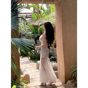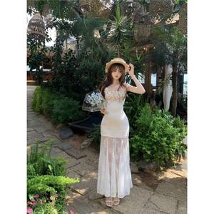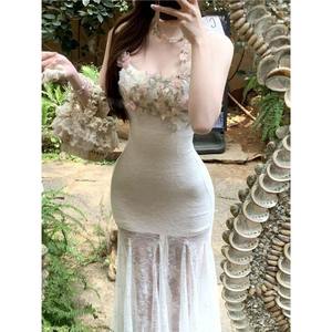 法式度假风超仙绝美收腰显瘦吊带裙新款高级感重工花朵网纱连衣裙