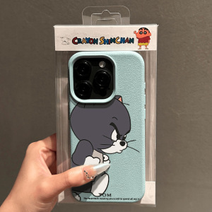 趣味小汤姆适用苹果16PROMAX手机壳iPhone15卡通14荔枝纹13软壳11
