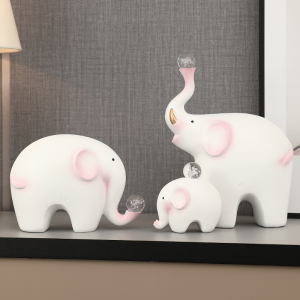 ι♯ι♯ι♯水晶球一家三口象白粉(BG004白粉三只)ι♯ι♯ι♯✓