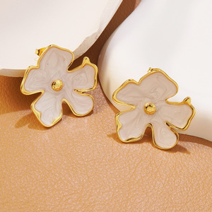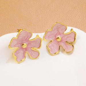 跨境新品滴油钛钢花朵耳环女轻奢高级感不锈钢镀金珐琅耳环耳饰