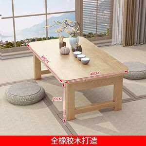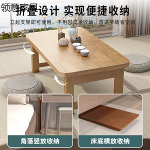 折叠桌橡胶木炕桌家用实木榻榻米小茶几飘窗桌床上学习桌电脑矮桌