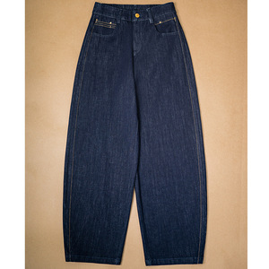 素度新款休闲四面弹牛仔裤女侧边拼接绣线后腰松紧宽松镰刀裤长裤